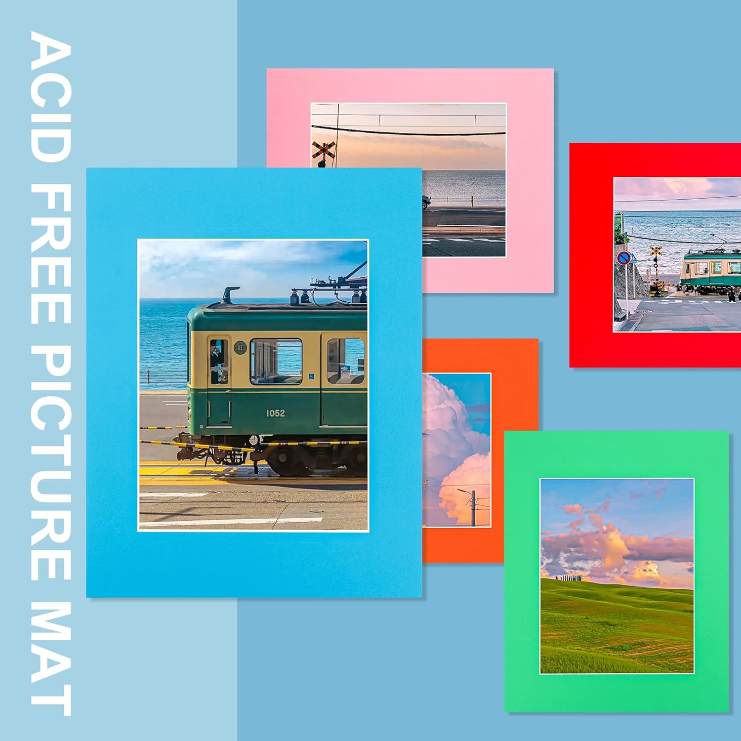 HOTUO 10 Pack 11x14 Mixed Colors Picture Mats, 4 Ply Thickness Frame Mattes for 8x10 Photo, Photo Mat with Core Bevel Cut, for Frames/Artwork/Print/Pictur(with V-Groove)