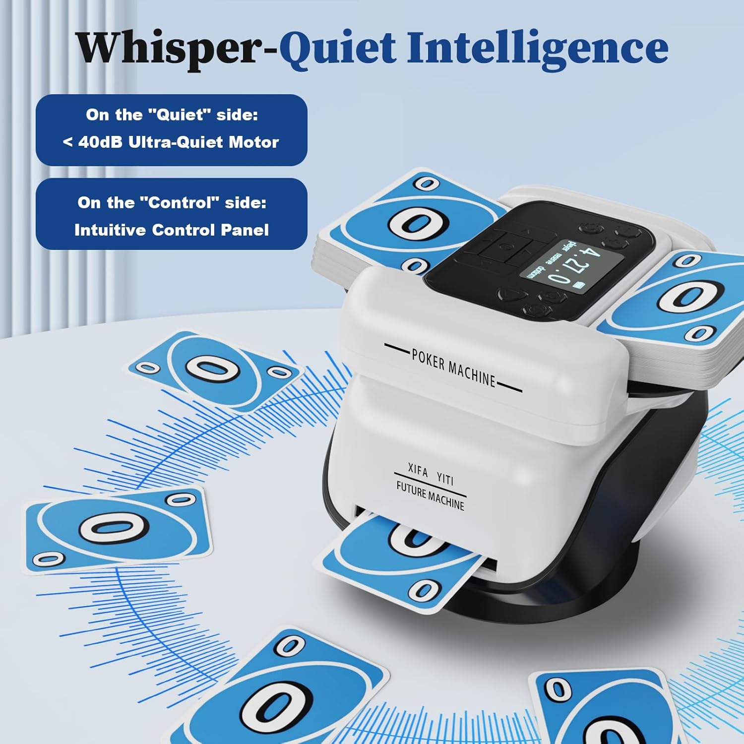 - 【2-in-1 Automatic Card Shuffler And Dealer】This card shuffler and dealer features an innovative automatic card shuffler design with a built-in smart sensor that stops shuffling when complete—no need to hold the button! Enjoy a quieter shuffle (40dB reduction) for seamless gameplay.