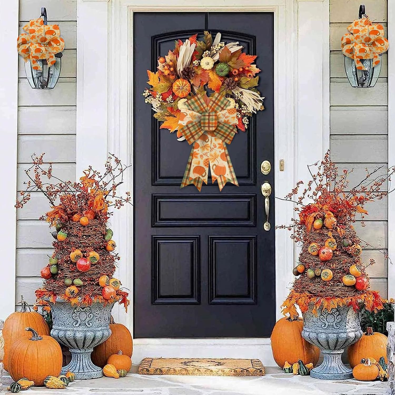 - Size and quantity: package arrives in your hands with 2 rolls fall ribbons(1 piece pumpkin ribbon,1 piece orange buffalo plaid ribbon), each fall decorative ribbon measures approx. 2.5 inches in width approx. 5 yards in length, so you will get a total 10 yards wired edge ribbons, long enough to satisfy your decorative needs and gift wrapping purposes.