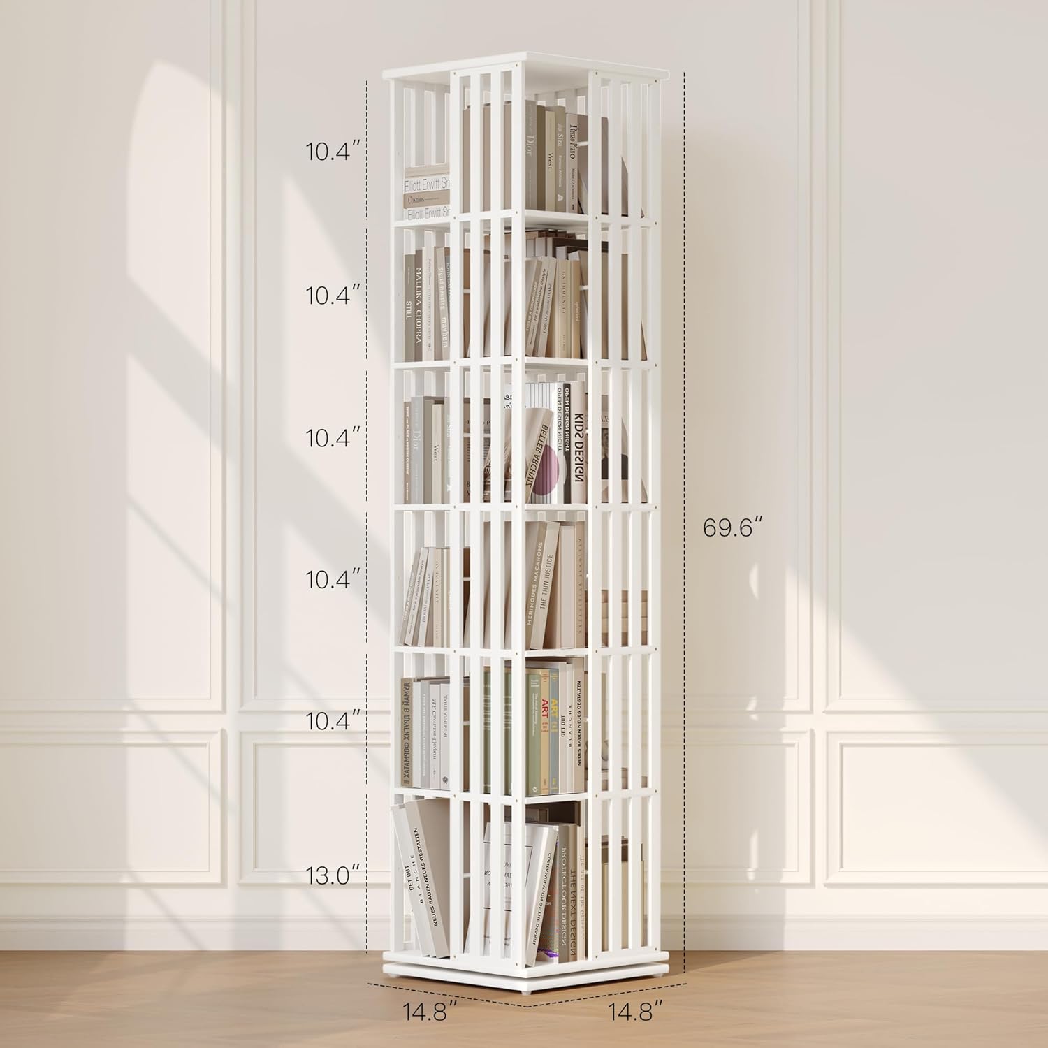 - Versatile Storage for All Book Sizes: Designed for flexibility, this 360 bookshelf organizer fits everything from children’s picture books and novels to tall art books and binders. Anti-fall rods keep items secure, while the rotating design ensures full access from any angle. Great as a kids bookshelf, media storage tower, or décor display stand.